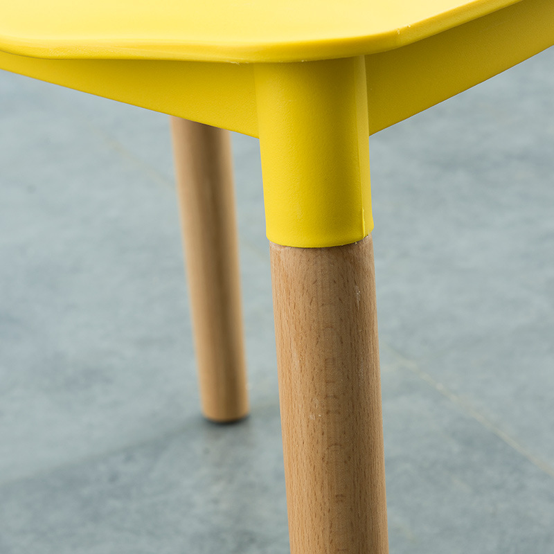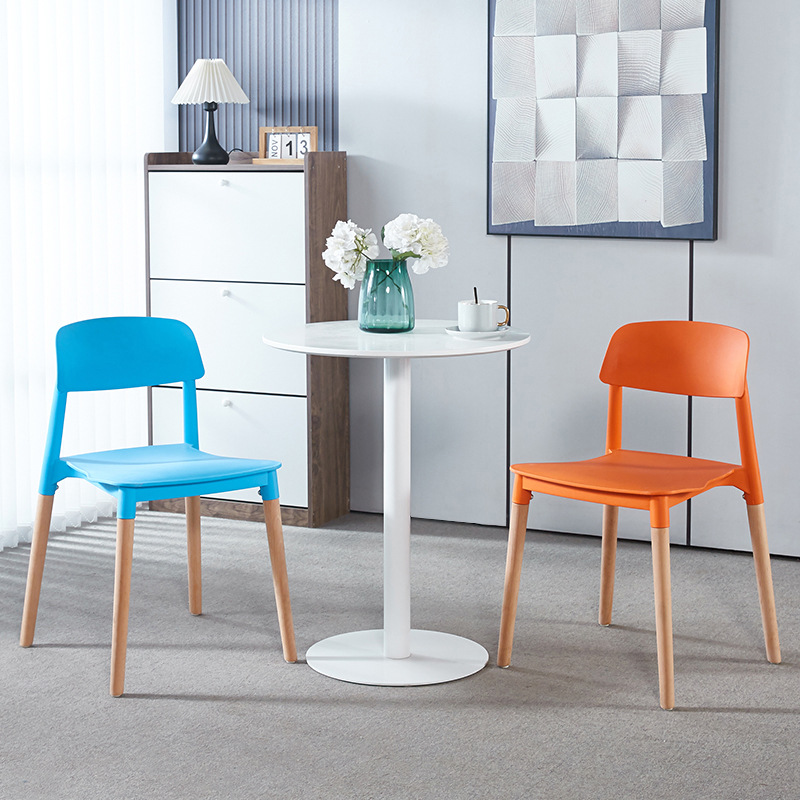 The frame of LJ-JC04 plastic chair with wooden legs is crafted from high-quality polypropylene (PP) plastic, ensuring lightweight handling without compromising on strength or longevity. The legs are constructed from solid beech wood, providing a natural contrast to the vibrant seat and adding to the chair’s structural integrity. This fusion of materials not only makes the chair visually attractive but also enhances its stability and load-bearing capacity. LJ-JC04 plastic chair with wooden legs is designed with ergonomics in mind-featuring a gently curved backrest and a subtly contoured seat to support comfort during extended use.