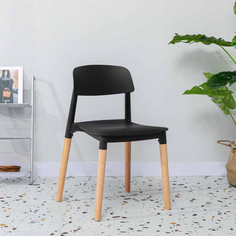 Functionally, LJ-JC04 plastic chair with wooden legs is versatile and low-maintenance. The plastic surface is easy to clean with a damp cloth, and the wooden legs are coated to resist moisture and wear. Rubber feet protect floors from scratches and provide grip. Ideal for indoor use, the chair is perfect for dining, meeting, or casual seating areas where both style and function are essential.
